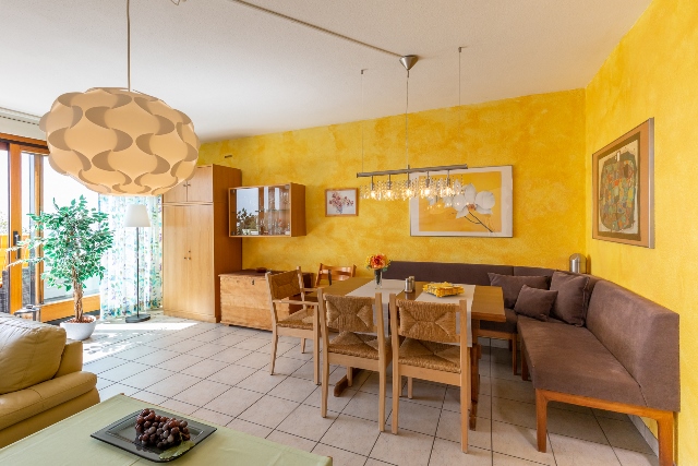 The bright living- and dining room has a small balcony overlooking the lake, in the direction to Constance and the island of Mainau. The holiday flat has underfloor heating and a fireplace, there are books and games available.